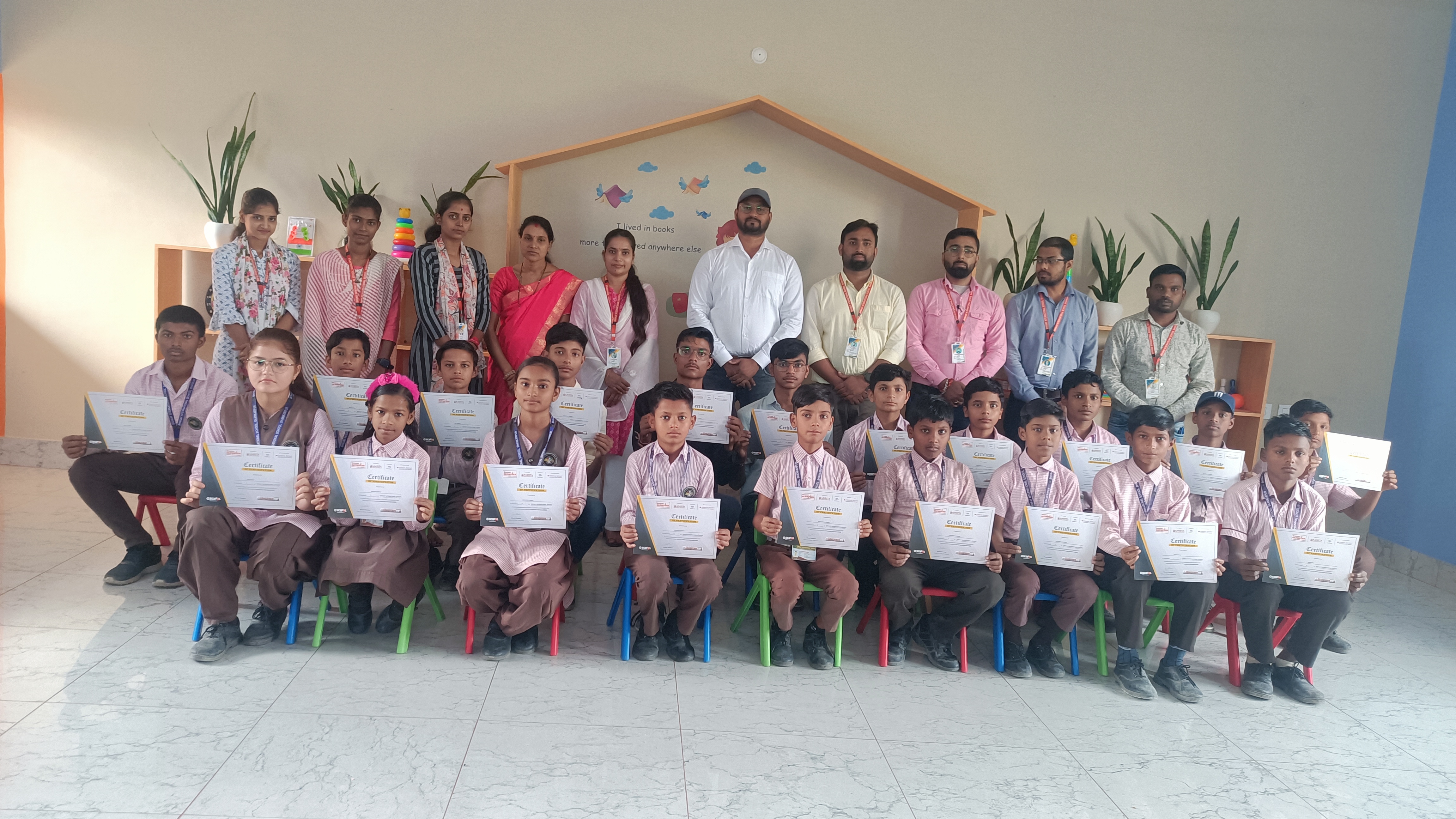 A memorable moment captured as students proudly hold their certificates, celebrating their achievements and success..
